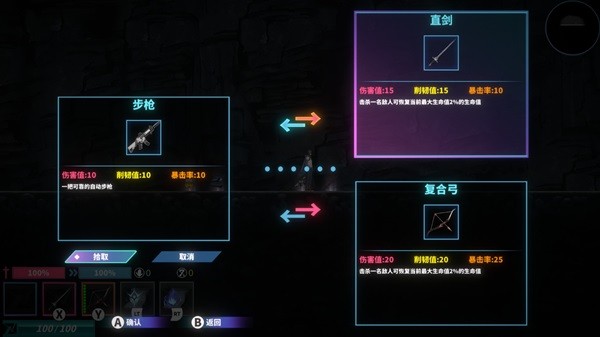 回血的手段则可以靠喝药——BTW作者说自己是魂系粉丝,从喝药异常慢还有可打断这一点我倒确实是看出来了点,不过过度喝药会让打BOSS时兵粮寸断,所以还是要寻找点额外的手段节约血药,那么如何达成呢?前期可以靠老家可选的武器直剑,虽然战力是一坨,但是击杀可以回2%的血量,可以使用步枪之类的武器削韧,先把敌人打出晕眩再用直剑补刀。然后在伤害成型之后,可以用上所有的钱在天赋三选一那里REROLL,直到ROLL出杀敌回5%血,ROLL出这个天赋以后基本就是全程回复无忧,一定是满血瓶(最大6)见BOSS,只要别来不及喝药暴毙,肯定闭眼随便通关了。