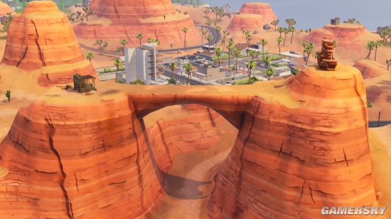 棕榈天堂外两座高山上有着宝箱和裂缝的刷新点,降落这两个任意一个区域开完宝箱,周围的仙人掌再锄完,远程武器还可以打击下棕榈天堂的人,偷几枪说不定就是一个淘汰入账。再选择裂缝去其他资源点搜索,小点快搜,转移劝架。