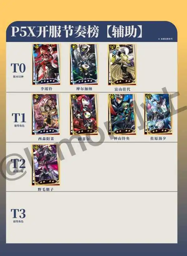 《女神异闻录夜幕魅影》将在4月12日开服公测,公测版本中就已经拥有很多角色了,那么这些角色的强度如何呢?请看下面由“小土的手游频道”带来的《女神异闻录夜幕魅影》角色节奏榜,一起来看看吧。