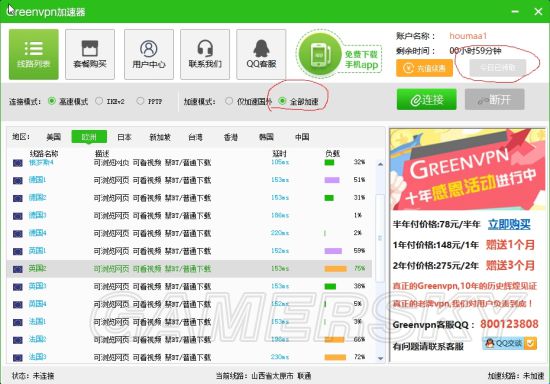 找到欧洲-英国节点,点全部加速,然后连接