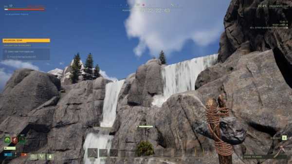 着陆后,打开地图寻找补给箱的图标,应该就在着陆点附近。双击导航点之后过去,补给箱位于瀑布顶部,所以还需要爬山。