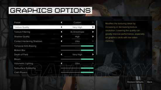 1.4G及以下显存,R9 290 GTX970以下的显卡把 Texture Quality调成very high,这个能提高至少5帧左右,画面差别即使贴鼻子也基本看不出来。