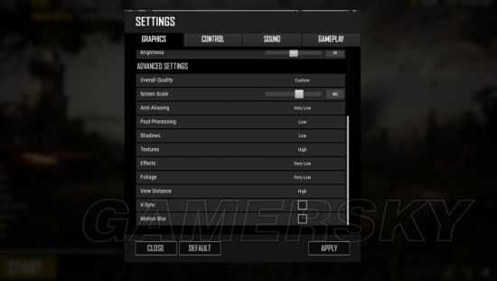 使用抗锯齿同样可以降低游戏中的锯齿状线条,在某些游戏中这个选项对游戏性能有着巨大的影响,不过对PUBG影响却很小。顶尖选手会让这个选项保持在低,尽可能地维持较高游戏性能,同时降低边缘模糊——这样能够保障最大限度清晰显示物体的轮廓,以便于你分辨不同的物体。不过在现实游戏中,这个选项选什么并没有很大差别。