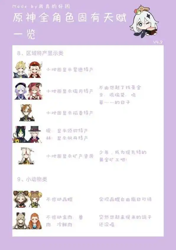 正文 2025年《原神》全角色第六天赋一览「超实用」 快乐游戏家 /2025-01-15 10:11:34 /55 浏览量 0115 《原神》到现在已经出了很多角色,除了旅行者,每一个角色都有自己独特的第六天赋。下面给大家分享《原神》全角色第六天赋一览,便于大家查寻自己需要的第六天赋。 直恐好风光,尽随伊归去。 -- 展开阅读全文 --