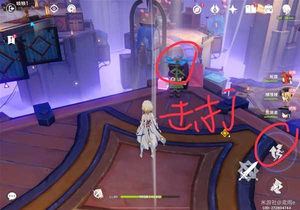 之后就是进入秘境,不允许带自己的角色,旅行者可以把荧的生命值拉一下哦,更抗打。新机关都已经带大家了解一遍了,接下来就不会这么多图片啦,柏林的攻击可以走角落里,受到的攻击会比较少。