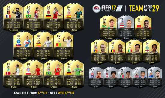 在每个星期的《FIFA17》UT模式都会汇聚来自世界各地的国家队、俱乐部的顶尖球员。这个队伍可供玩家进行挑战。那么下面小编为大家带来第二十九周的最佳阵容,由本周阵容由莱万多夫斯基、戈麦斯领衔,大家来看看吧!