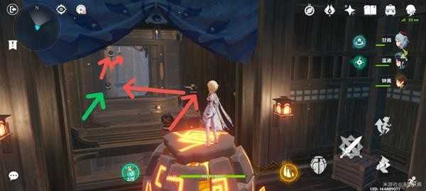 厅堂:更改箭台为红色,旋转绿色箭头所指的机关(红色箭头是箭台发射路径)