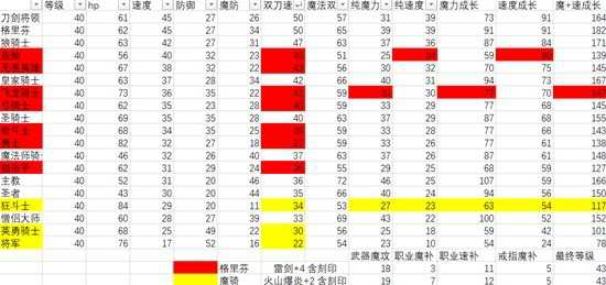 而速度拉胯的希特丽妮卡即使在格里芬升30级再转回魔骑升到5级也依然空有净27魔但只有20速7体格,拿不起雷电剑。而庞德罗入队属性虽高,但即使先在圣者升24级再转到魔骑升到5级净魔力依然只有24。不知道为啥一堆人吹的艾比不仅只有净24魔20速,并且专属职业林德普尼尔更是只有10魔补5速补,角色速度25只能滚去打将军,令人感叹。