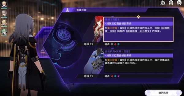 第一位面BOSS提供BUFF选择:优先选择不免疫冻结的敌人,接着优先选择冰属性,若没有就选择我方拥有的其他属性。再没有就随便选个看起来好打的。