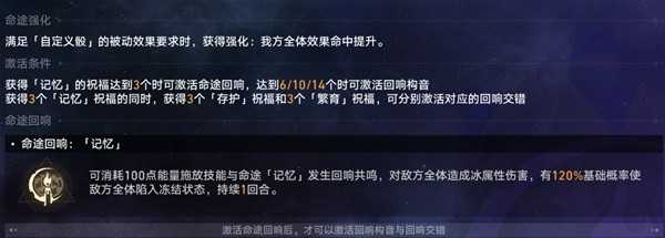 操作思路:利用命途回响和祝福的离神效果,用冻结控制敌人,保护我方生存,并且用离神解除的伤害进行输出。