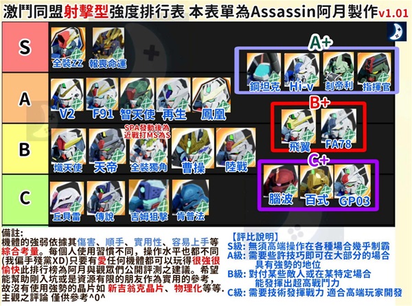 PS:每个机种的强弱本来就没有绝对正确的排名。只要有爱,任何机体都可以是你心目中最强的机体。