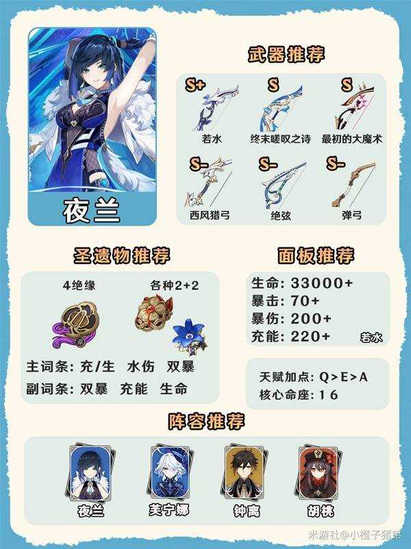 《原神》4.8下半版本复刻了五星水系角色夜兰,其后台输出能力非常不错,那么4.8版本夜兰要怎么培养呢?下面请看由“小橙子猪弟”《原神》4.8夜兰培养与突破材料收集一图流,希望可以帮助到大家。