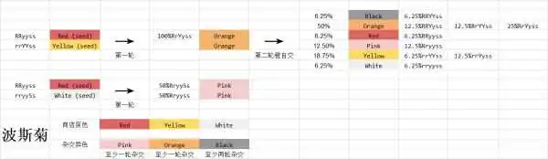 正是因为绝大部分的花色无法直接判断基因型,所以我们杂交路线母本全部为商店的种子,这样能够保证每次得到的下一轮杂交素材是我们需要的基因型。