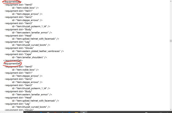 这里我已经改过了,原本的装备只有item 0 1 2三个装备栏,我加了一袋箭,另外把第一个弓换成了noble_bow