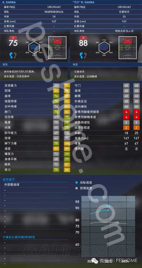 使用评价:gaona的先天条件促使他适合在靠边的位置活动,他的内切方式和罗本相同,喜欢横向绕开一个很宽阔的空间兜弧线,但脚法时灵时不灵,真正把速度放慢下来,推射一些慢速球反而命中率更高,同时他接应后不调整一脚射门的成功率也不错。实况里一个球员强不强,很大程度取决于非玩家蓄意授予球权时,球员在有限的机会里有没有优异的发挥,gaona在这样的情况下很一般,5星算是他的巅峰水平了。