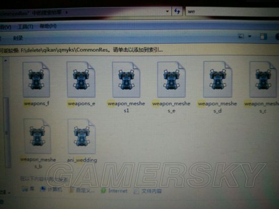 所以如图,打开游戏目录下的CommonRes文件夹,搜索weapon(注:这是武器的意思)