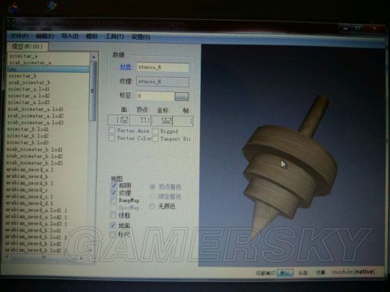 上图中的几个文件其实是不是单独的模型,是模型几个集合。要打开它,需要用到openbrf了,顾名思义,就是打开brf文件。这时你会看到左侧列表里面许多文件,逐个点开,会看到右边就显示出模型实体