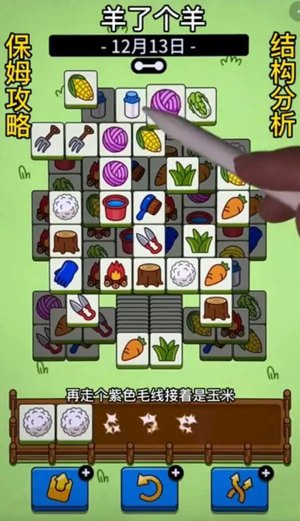 正文 《羊了个羊》12月13日通关教程[玩转游戏] 游戏萌主 /2025-03-11 13:08:34 /37 浏览量 0311 《羊了个羊》游戏难度很高且每日的关卡都会发生变化,那么13号该怎么通关呢?下面请看玩家“yc土豆长芽不长牙-”带来的《羊了个羊》12月13日通关教程,一起看看吧。 青菰临水拔,白鸟向山翻。 -- 展开阅读全文 --