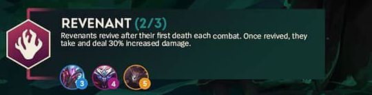 每个回合,[复生亡魂]会在死亡后复活一次,回复一定生命值。复活后,他们会造成并受到30%额外伤害。