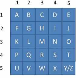 两两出现的数字组以及不超过5的数字大小清晰地显示这里使用了Polybius Square加密法: