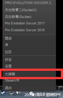 3、在任务栏右下角的steam图标右键,选择大屏幕模式。