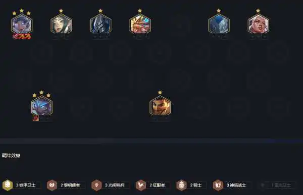 阵容羁绊:3铁甲3神盾3黎明2黎明2征服2骑士