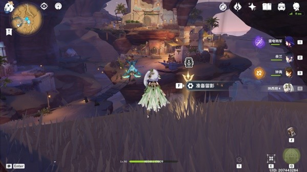 装备小道具「留影机」,使用草元素角色,准备留影