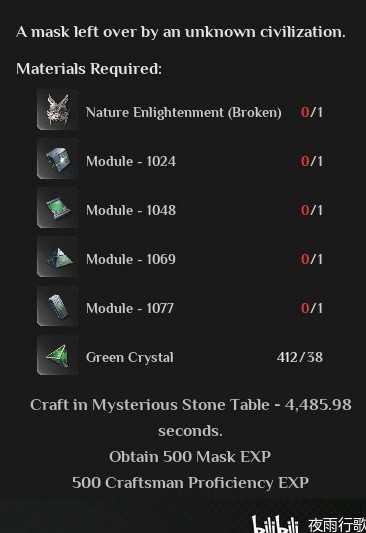游戏中还有【铁血卫士】和【自然启蒙】这两个无法直接获得的面甲,残缺的【铁血卫士】和【自然启蒙】可以在【古代地下城】中随机获得,而修复面甲的模块需要您收集材料,在【神秘石台】中制作,如下图所示。