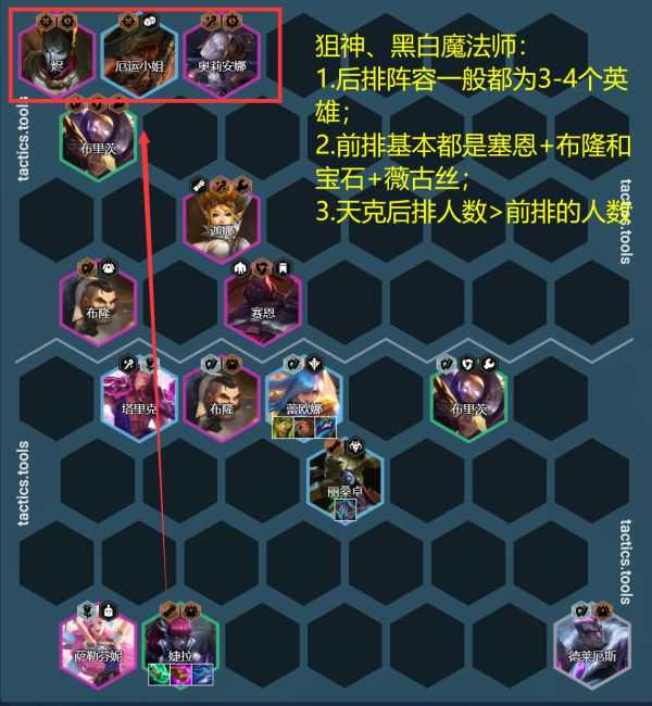 但是这套后排只有婕拉和萨勒芬妮两个人,这种后排少的非常容易被刺客阵容针对和克制,对付像刺客阵容建议可以直接选择抱团站位。