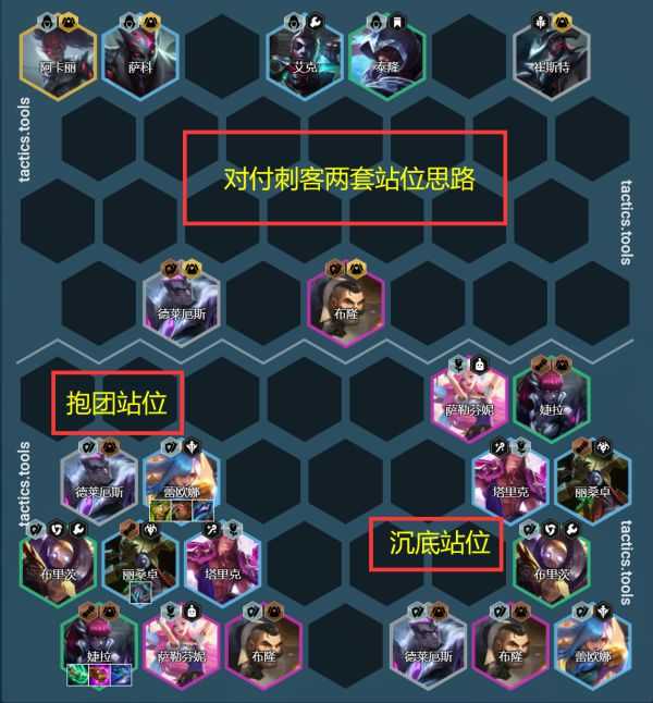 如果后期大成打刺客阵容,也可以选择保镖沉底站位的玩法,只要婕拉没有第一时间被对面狙杀,婕拉反打刺客阵容还是非常简单的。
