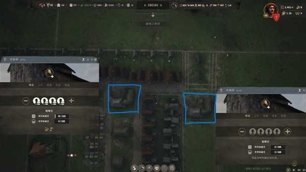 提供一个思路类似图里这样建两座,左边的塞满人只负责仓管取货存货,不占用贸易马车空间。右边的离国王大道较近,建设较开阔,只负责贸易马车进出,这样工作分开就没有卡东西的问题了。