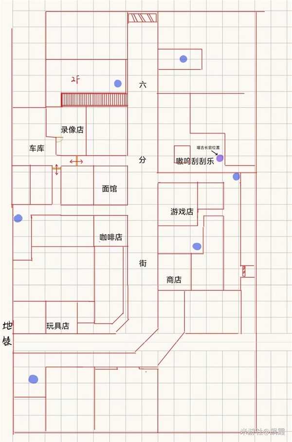 在六分街上一共有六个遗失的小卡格车,以下是我画的六分街的地图(有点抽象),完成第一部分的主线任务地图上就会显示了。
