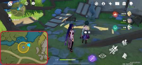 3、在附近发现王平安被两只丘丘人包围起来了,只要将丘丘人打败即可自动触发与王平安的对话