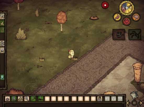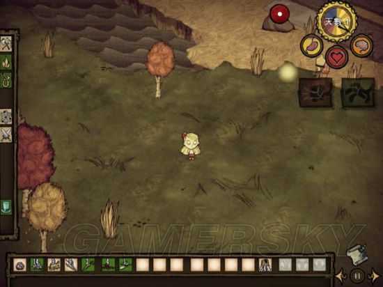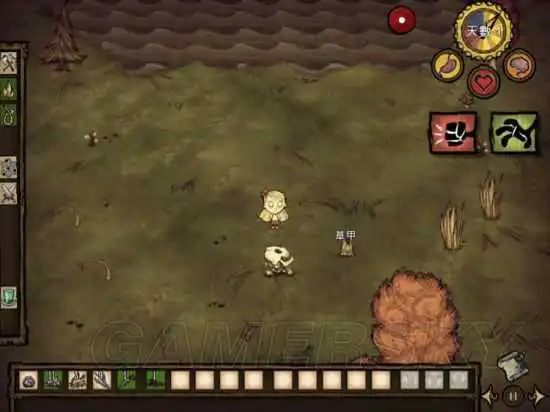 资源包括:小树枝,草,花,燧石。能捡就捡,但也别浪费太多时间,尽量探探地图(四周扩散地探)尽量别走回头路,很浪费时间。我现在的物品栏里还没有燧石。(都说了是非洲人了,前期看到一个还被鼹鼠抢先一步拿走了。