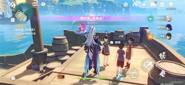 来到璃月港码头上的船,随机跟三个小朋友对话,玩海盗游戏,获取任务