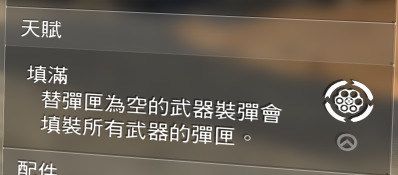 天赋:填满,替弹匣为空的武器装弹会填装所有武器的弹匣(核心天赋,很难取代)。