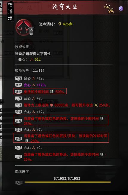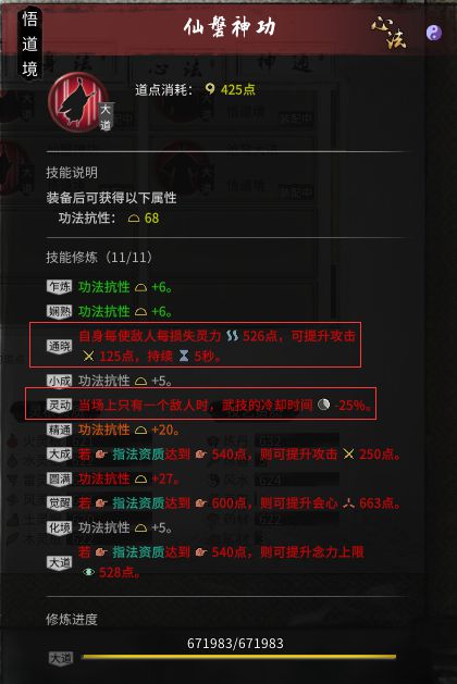 大法选择剑大法(减左键、身法、绝技cd,词条不全可优先左键、身法cd)