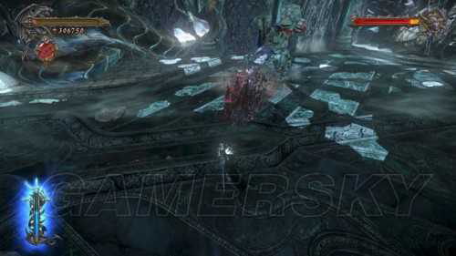 使用武器回复HP的教学,此阶段BOSS不会攻击玩家,靠近BOSS的话会将玩家弹开,使用冰剑(Void Sword)将武器槽魔力耗光后进入专注状态教学,完成教学后进入下一阶段。