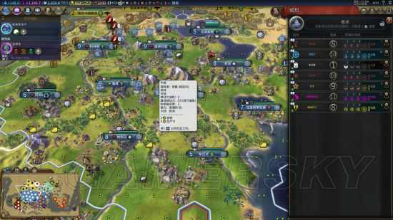 这把地不是很好,起初铺了6城左右,没造多少兵,后来大概80t左右海盗宣我,一怒之下灭了他,最终14城,有俩城没卫城。(解放了一个城邦)