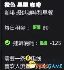 信誉1级就可以造咖啡馆了,这可是完成任务、解锁创意一举两得的好东西。切记要只需求电线的咖啡馆,千万不要签约需求水管的咖啡馆,水表维护费要250,初期会导致破产的!一个咖啡馆就足够啦。