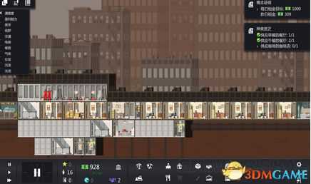 第四天,二层全部修建完成,基本型办公室完成,接50人口任务。目标:40人口,修建3楼,地下一层左侧。商户可能会需求瓶装水和办公用品服务,记得预留资金,适时修建。40人口会提升信誉2级。解锁中型办公室和商店,但是这两个需求很高,前者需要多项服务,后者需要仓库,这都需要雄厚资金。而我现在只有1000多块,还需要完成任务来累积资金。所以继续把3层修建为小型办公室是不错的选择。毕竟瓶装水和办公用品的支出要有所回报才是。