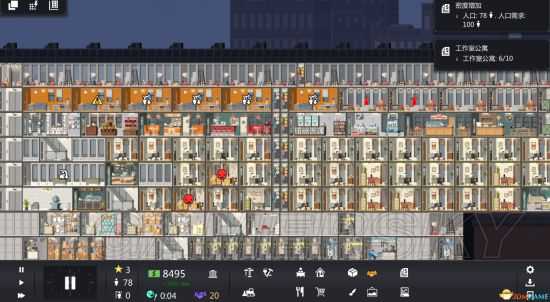 第十天,盖5楼和拓宽地下。昨天电梯还坏了,地下二层没地方造维修房了。。那个中型变压器位置放错啦!5楼正好完美做成10个小型公寓+1垃圾桶,选最低级的120租金基础宿舍。因为豪华的宿舍讨厌吵闹和气味。