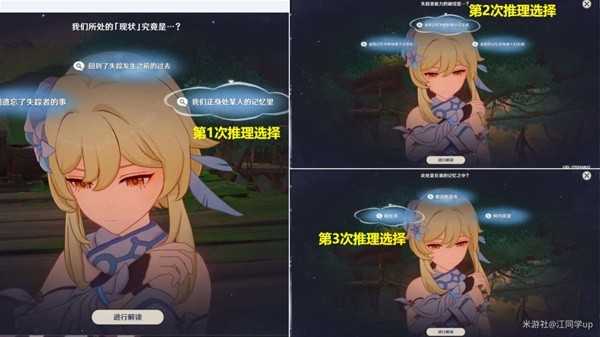 4、第1次选择【我们正深处某人的记忆里】后【进行解读】,然后【提交结论】即可,第2次选择【虚假记忆中的时间不会流逝】后【进行解读】,然后【提交结论】即可,第3次选择【阿托莎】后【进行解读】,然后【提交结论】即可