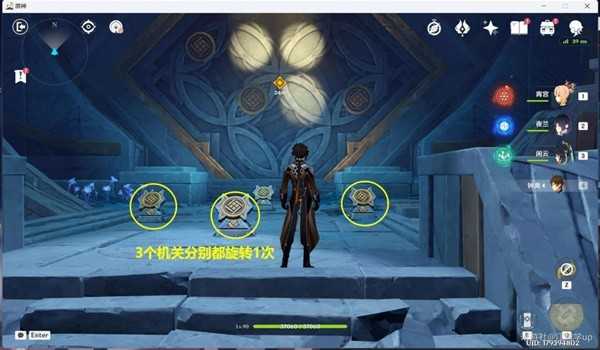 2、下来是将下图中3个机关都旋转1次后(无顺序要求),即可打开前面的门进去
