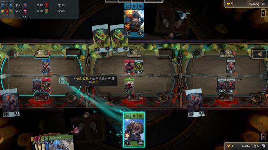 当部署阶段结束后双方各抽两张卡,各路法力值加一(/滑稽)。接下来就是行动回合进行往复,直到决出胜负。