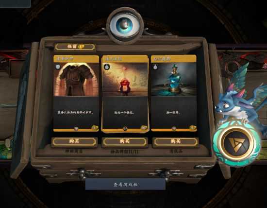 1.神秘商店:每一轮进入商店会刷新随机的装备,买完后,该栏就会空出。如果买不起可以利用神秘商店栏最上方的保留按钮(花费1金币)来保留等待下次进入商店购买。