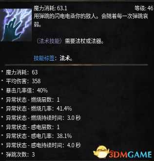 用了核心天赋后,每个技能有2个BUFF,连锁闪电是燃烧和感电,冰球是冰和燃烧,黑洞是燃烧和减速,回旋血刃是中毒和流血(根据副手的法术最高伤害BUFF是不一样的)。