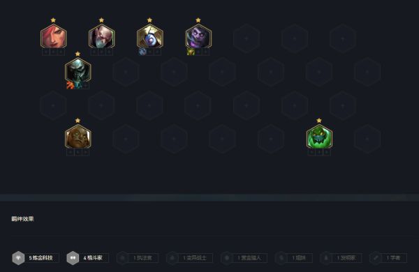 这套阵容主要依靠4斗与5炼金羁绊带来的超高肉度与坦度,特别是蒙多坦度优质,在前排能抗的时间久,给后排输出提供更优质的输出环境。