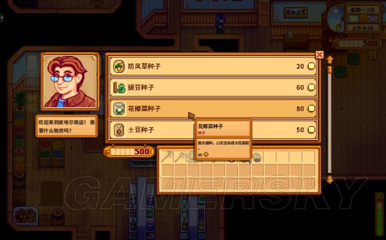 所以萌新们要注意咯,如果要买种子,最好提前做好准备,不要急需种子的时候,却发现种子店关门了,那就很尴尬了,只能去joja那个坑人的超市去买了。