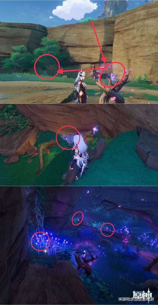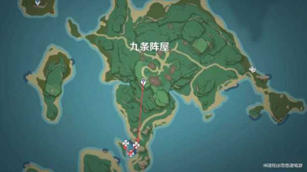 从传送锚点按路线走后,到沙滩旁的雷种子处,拿到雷种子后进入红色标记处的洞*,也就是之前做神樱大祓的洞中